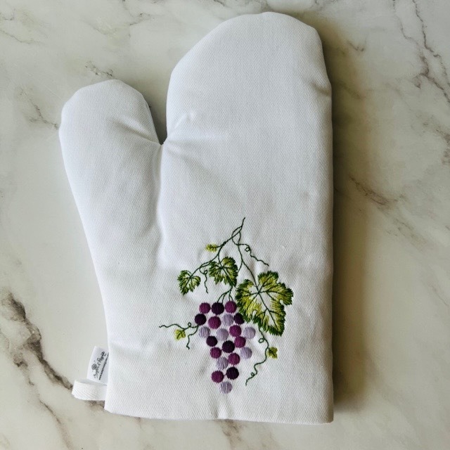 サイズ:26 x 20 cm 素材:綿100% 商品:オーブングローブ 柄:ぶどう ぶどうと言えばワイン!ポルトガルは地方によって気候が異なるので、個性のあるワインがたくさんあります。 メーカー:サスピロ・ド・アルガダオ 2012年5月創業、オリジナルの機械刺繍を施した高品質な布製品を提供しているポルトガルの会社です。 綿や麻などの天然繊維を使用し、すべてポルトガルで製造されています。 運営人は、愛らしく優しい柄の刺繍が大好きです。現地のお店でどの柄にするか選ぶのに苦労しました。 PorToccaはこの会社の輸入販売元です。