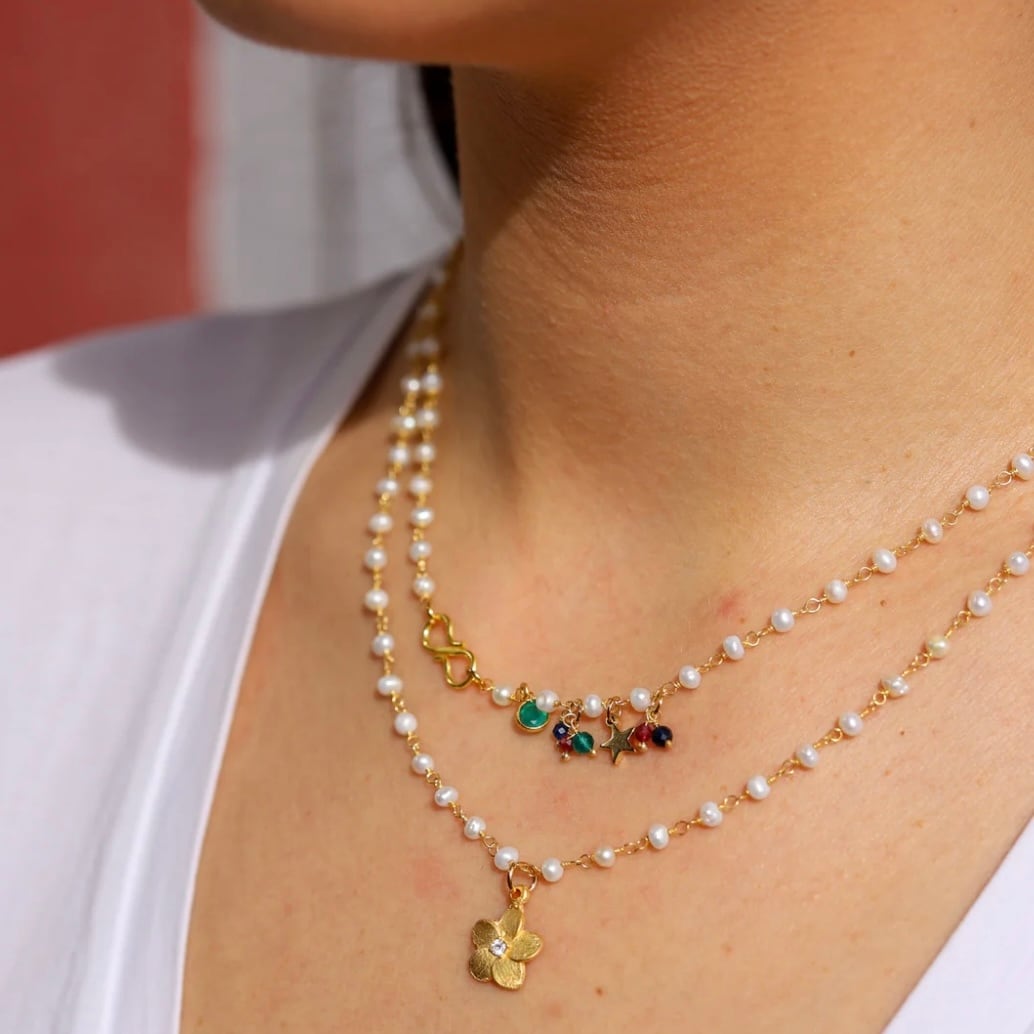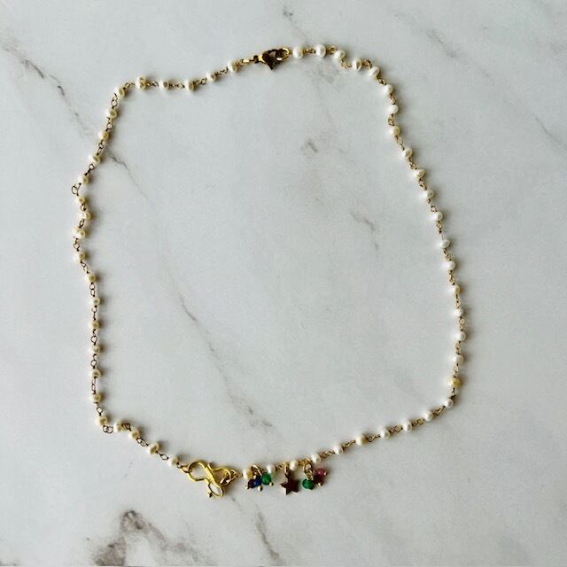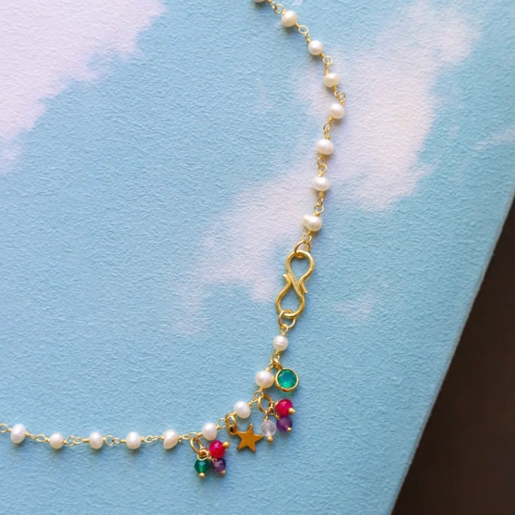 小さなパールにカラフルな天然石がセット。