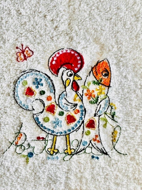 運営人は、愛らしく優しい柄の刺繍が大好きです。現地のお店でどの柄にするか選ぶのに苦労しました。