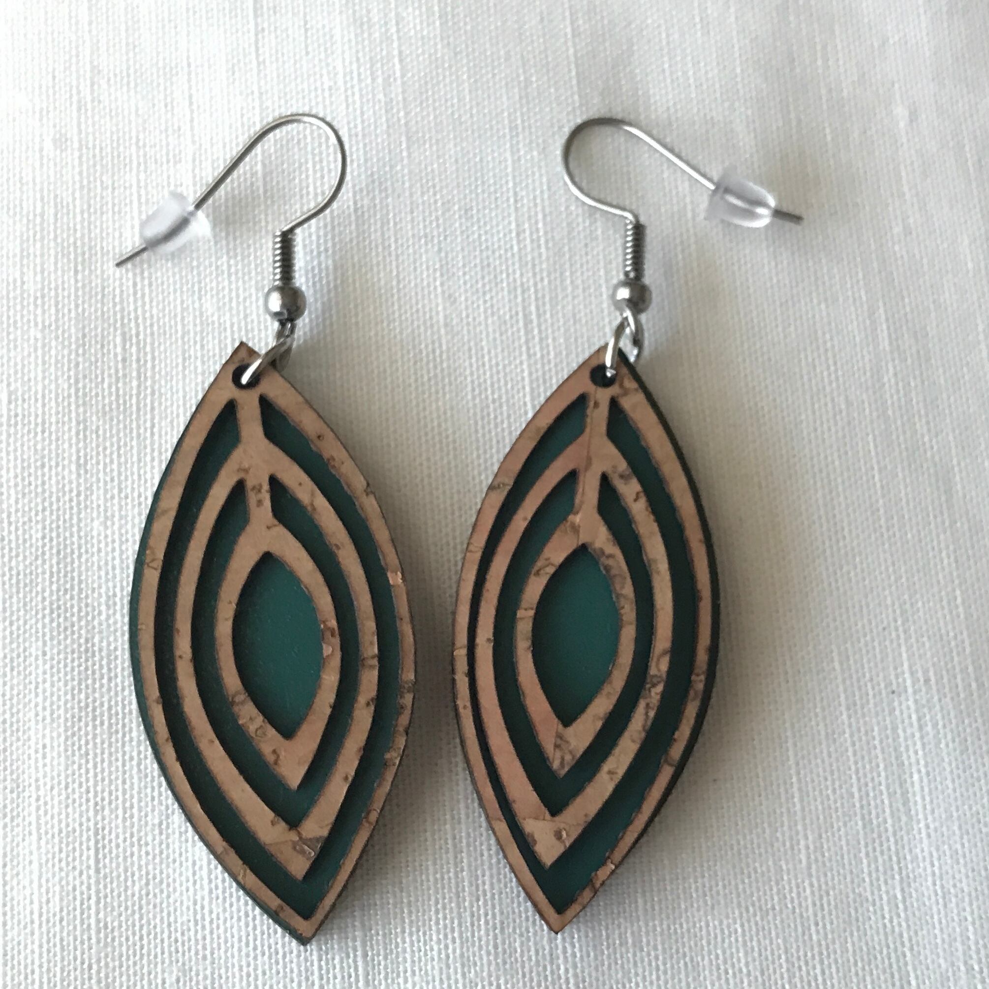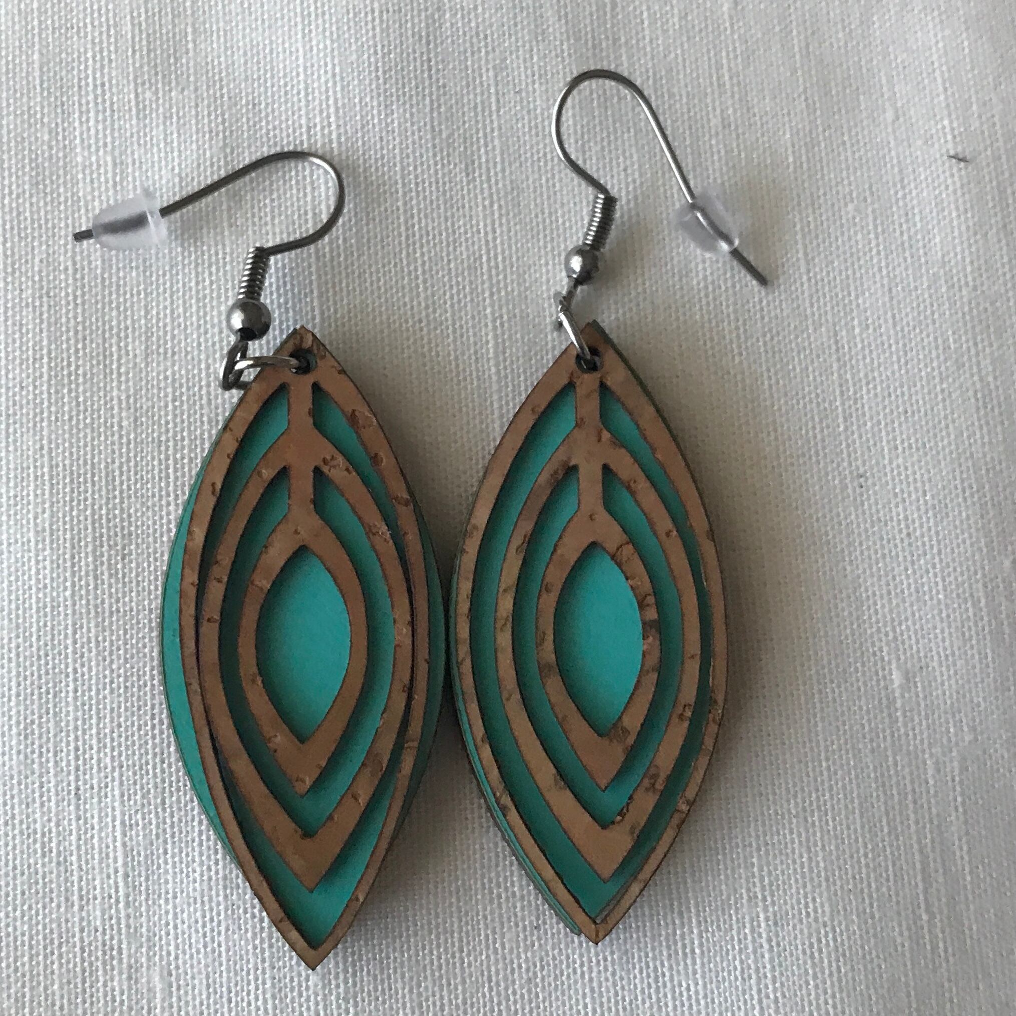 コルクと木材を合わせたピアスです。