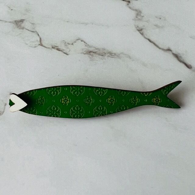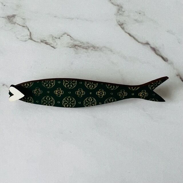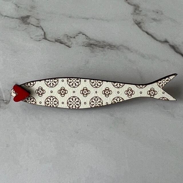アズレージョ柄が彫ってあるシンプルなブローチです。