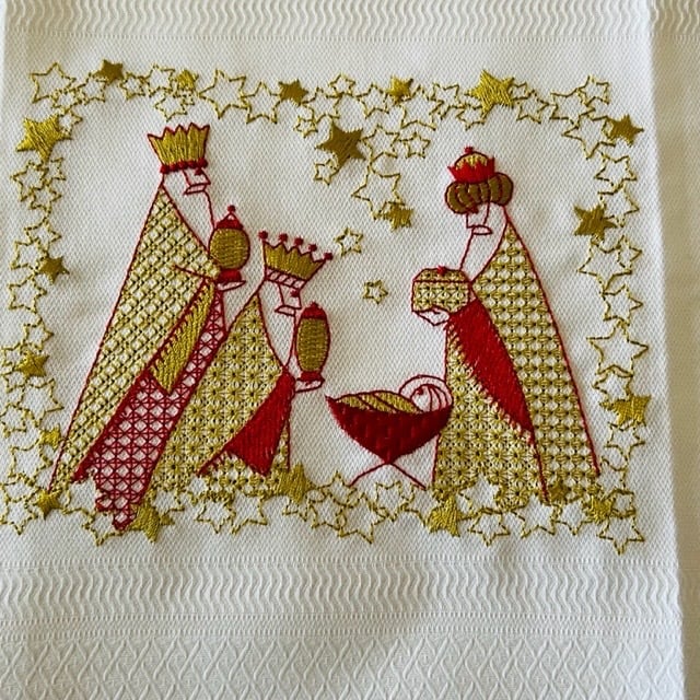 カトリック教徒に多いポルトガルらしく、東方の三博士が聖書に登場する有名なシーンが刺繍されてます。日本ではあまり見かけない柄ですね。