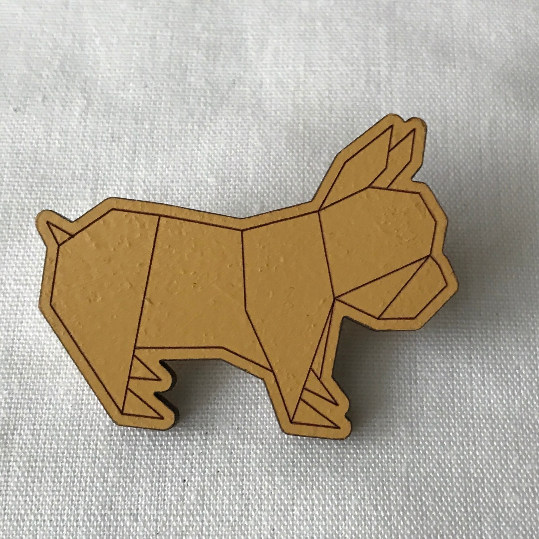 ウッドブローチ(タックピンタイプ) ORIGAMI-Bulldog